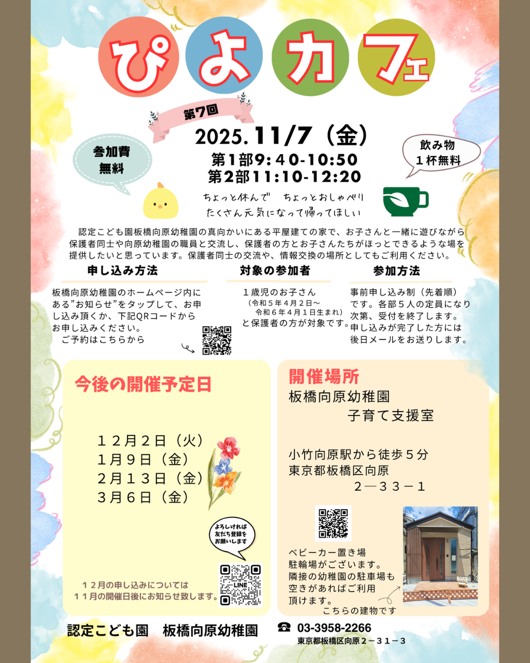 令和7年11月7日(火)に1歳児親子向け『ぴよカフェ』を開催致します♪