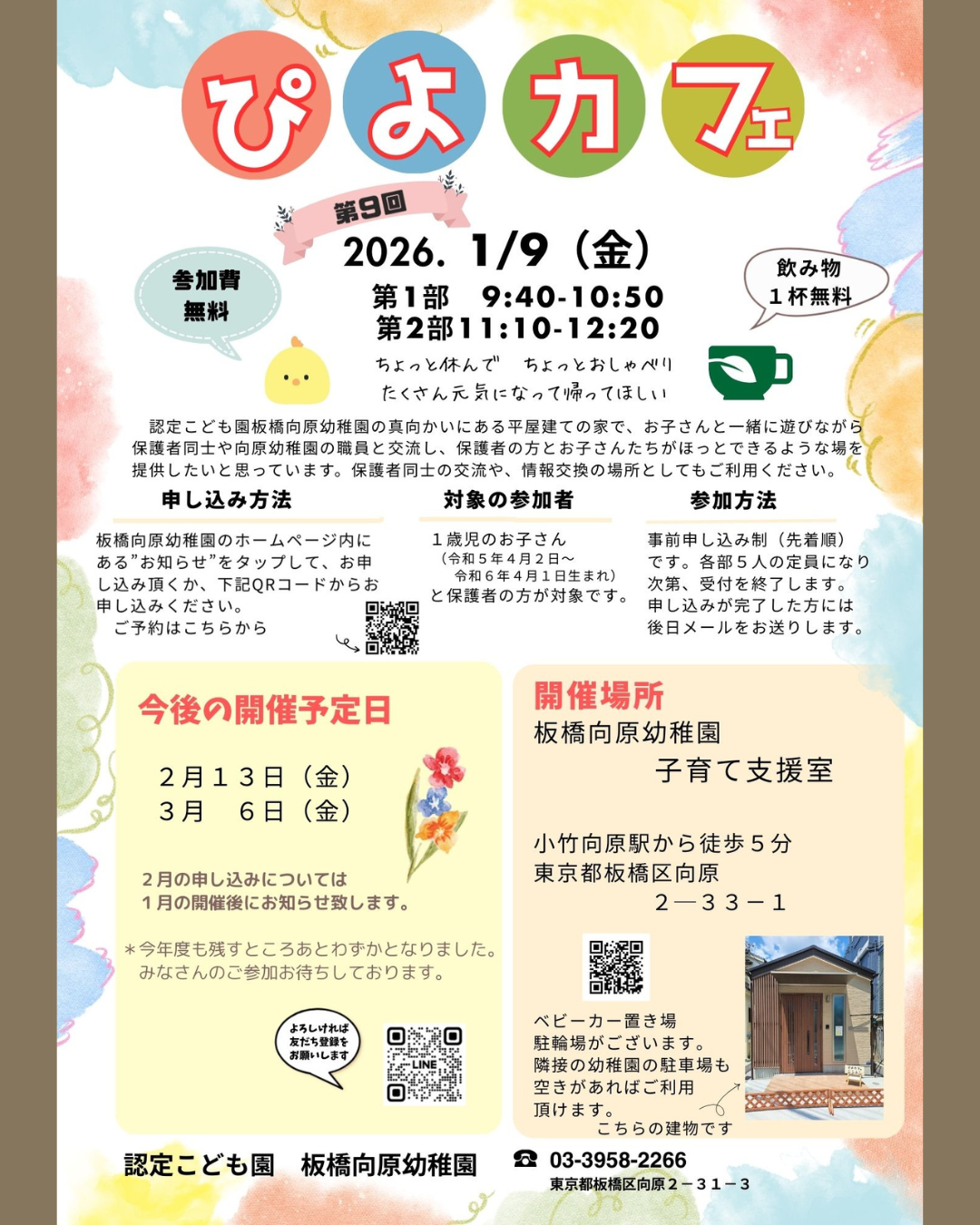 令和8年1月9日(火)に1歳児親子向け『ぴよカフェ』を開催致します♪