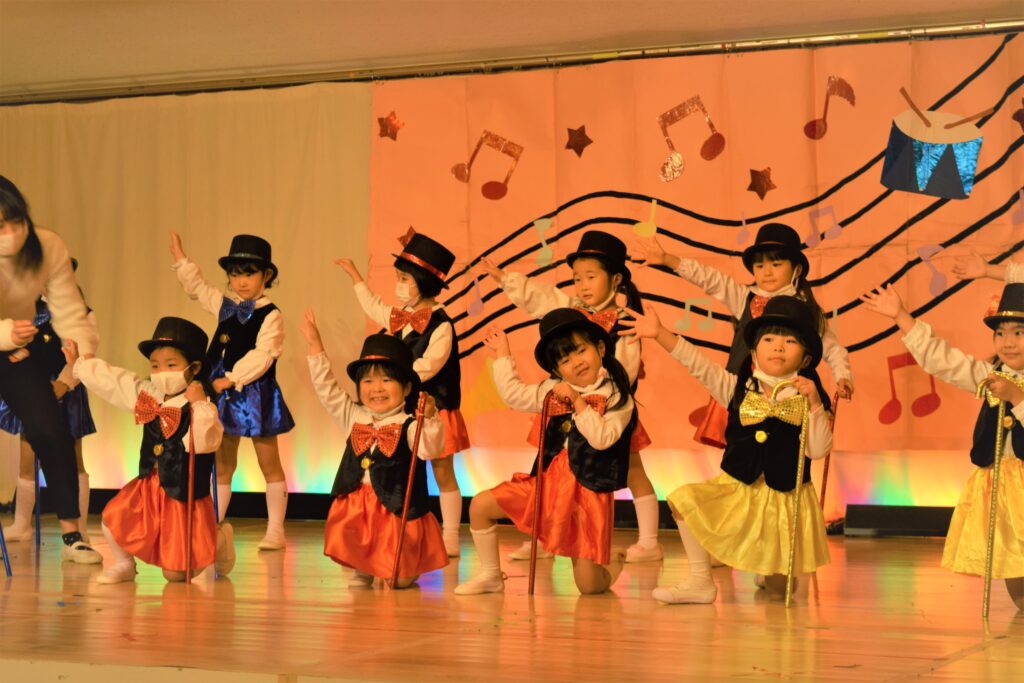 12月初めにお遊戯会を行いました。本番まで、あと何日かを毎日皆で数え、ずっと心待ちにしていた子ども達。 年少さんにとっては初めてのいなほ会で当日、少しそわそわしている子もいましたが、「頑張るぞ!エイ エイオー!」と皆で意気込み、ホールへ向かいました。舞台へ上がり、園長先生が挨拶をしている間も、始めのポーズでずっと待っている子がいて、とても微笑ましく思いました。終わってからは「どきどきしたけど頑張ったんだ!」と教えてくれ、沢山のお客さんがいる中で、一生懸命踊る姿に成長を感じることができました。