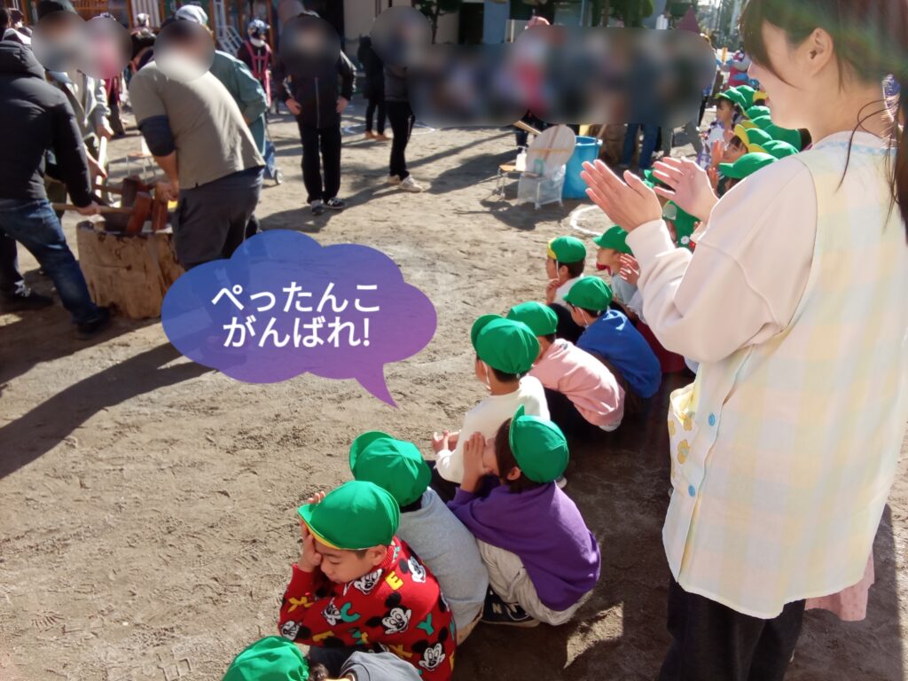 お父さんお母さんたちにパワーを貰って“ぺったんこ!とおもちをつきました!