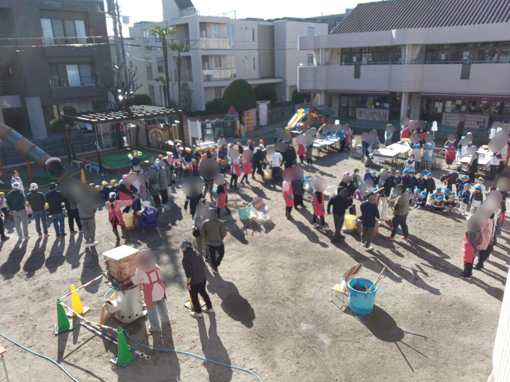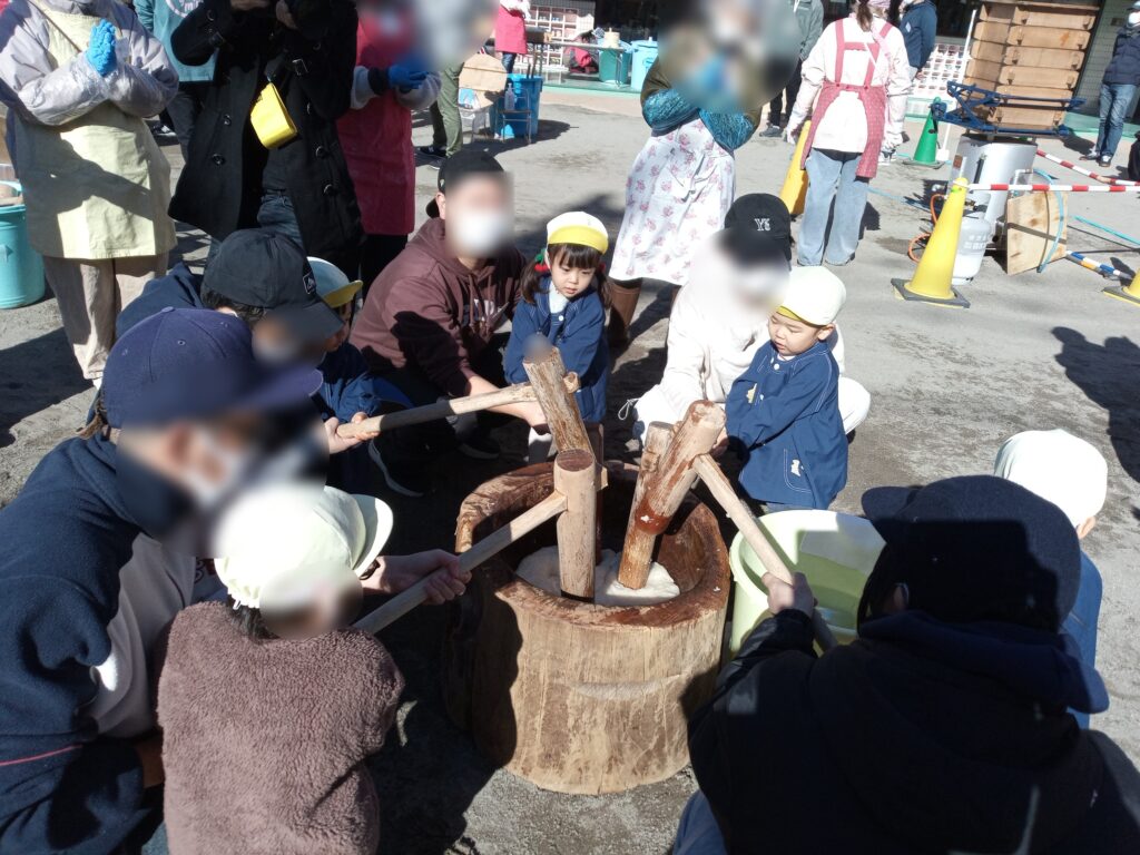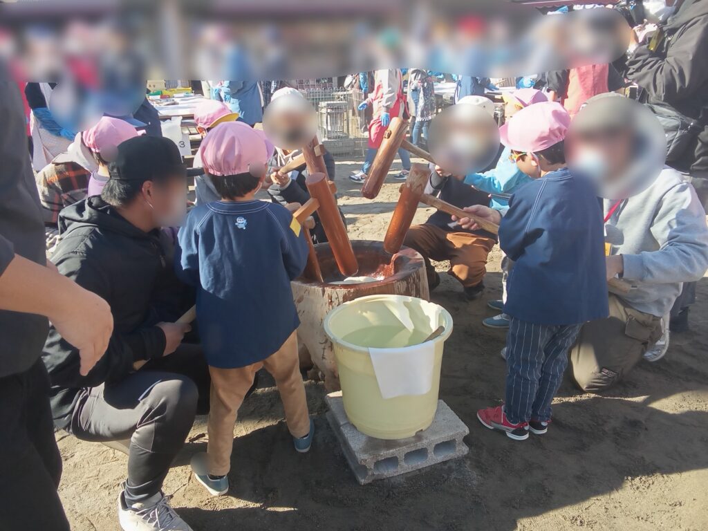 先日、園庭でおもちつきが行われました。