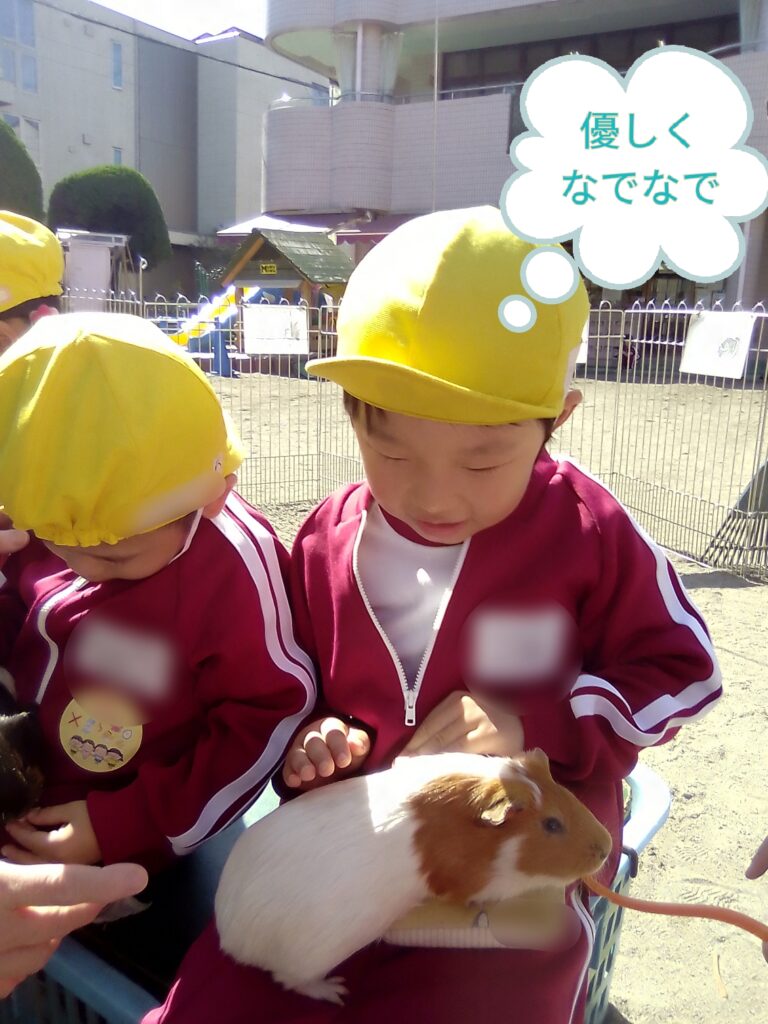 「ヤギさんは何の食べ物が好きなのかな?」「よしよししてあげたら嬉しいかな?」などと、動物さんの気持ちを想像しながら優しく関わる子ども達でした。