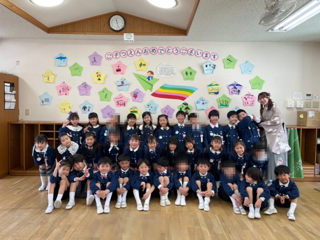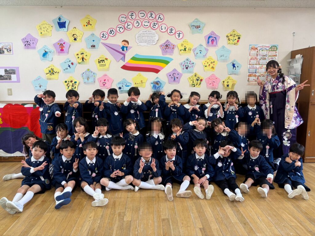 年少の頃は保護者の方と離れる事が寂しくて泣いていた子ども達も、当日は大きな声で返事をしたり、クラス皆で声を揃えて言葉を言ったり、立派に成長した姿が見られました。