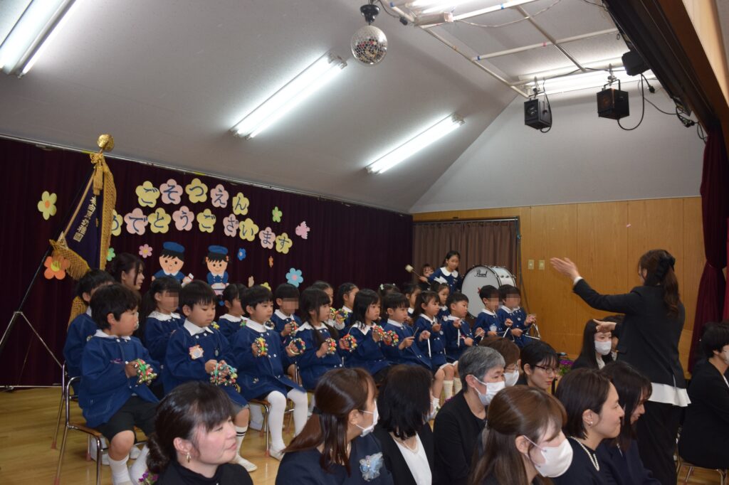 小学校へ期待を膨らませたり、緊張等様々な思いがあると思いますが、向原幼稚園での思い出を胸に、更なる成長を期待しています。