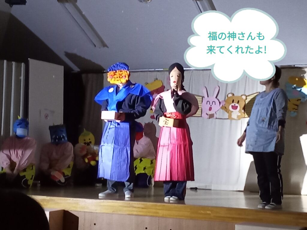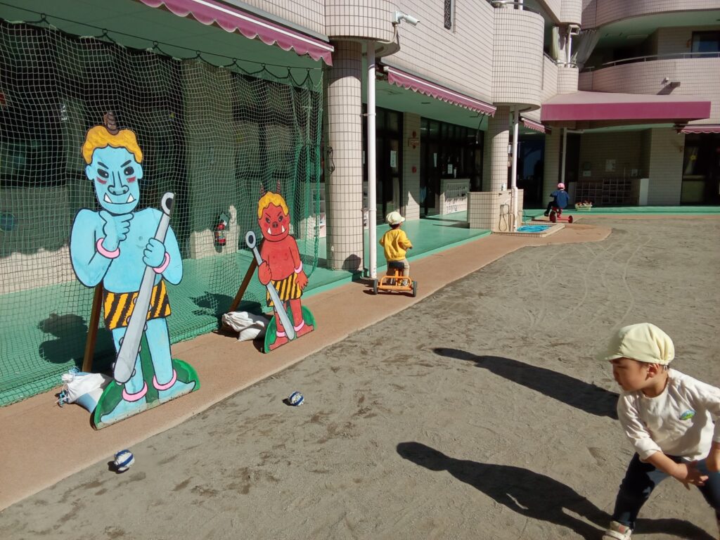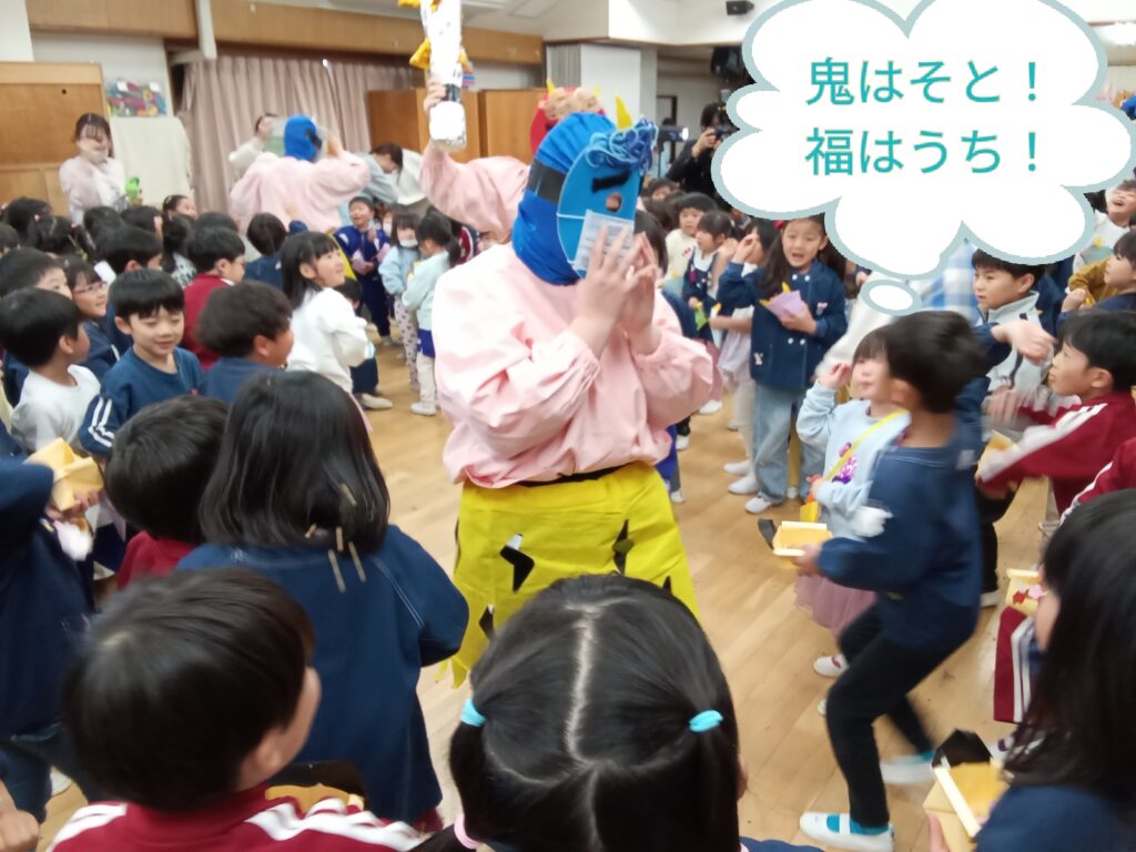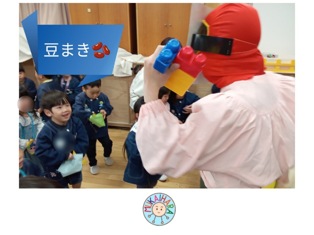 怖がっていた子もいましたが、福の神様も来てくれて作ったますに入れた豆を投げてやっつけていました。